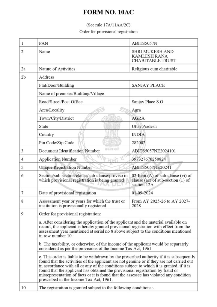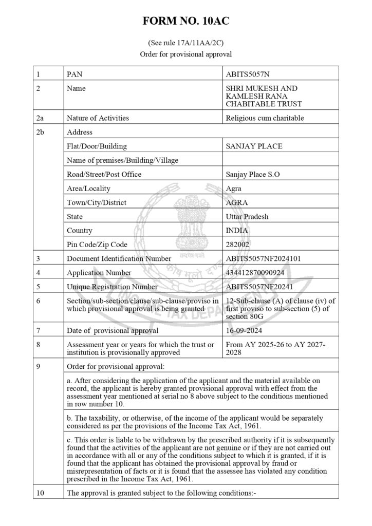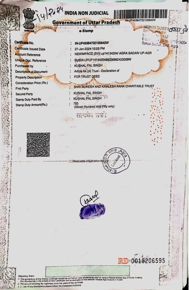 Shri Mukesh And Kamlesh Rana Charitable Trust